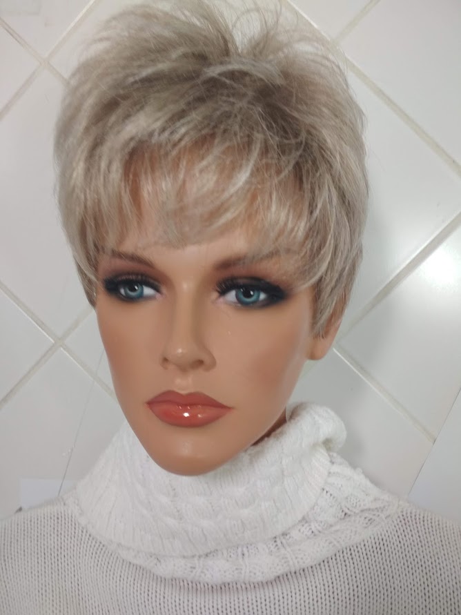 Peruka z włosów syntetycznych.Rozmiar uniwersalny, regulowany.Wykonana w całości na tresach.Kolor-perłowy siwy.101.cert-CE